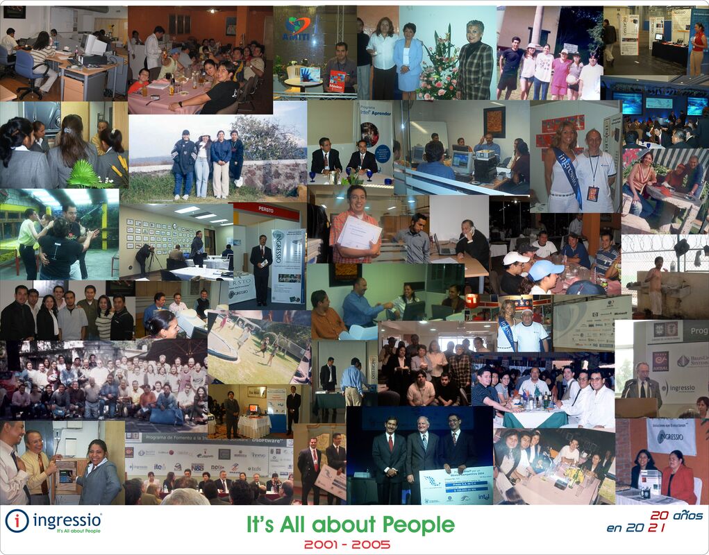 Compartimos algunas de las memorias que tenemos del equipo de Ingressio entre 2001 y 2005, así como de algunos de los primeros clientes que nos acompañaron con entusiasmo y confiaron en nosotros como AGFA, AFASA de Vokswagen, Estrella Blanca y hasta un proyecto en un penal en la Unión en Guerrero que nos dejó muchos aprendizajes.