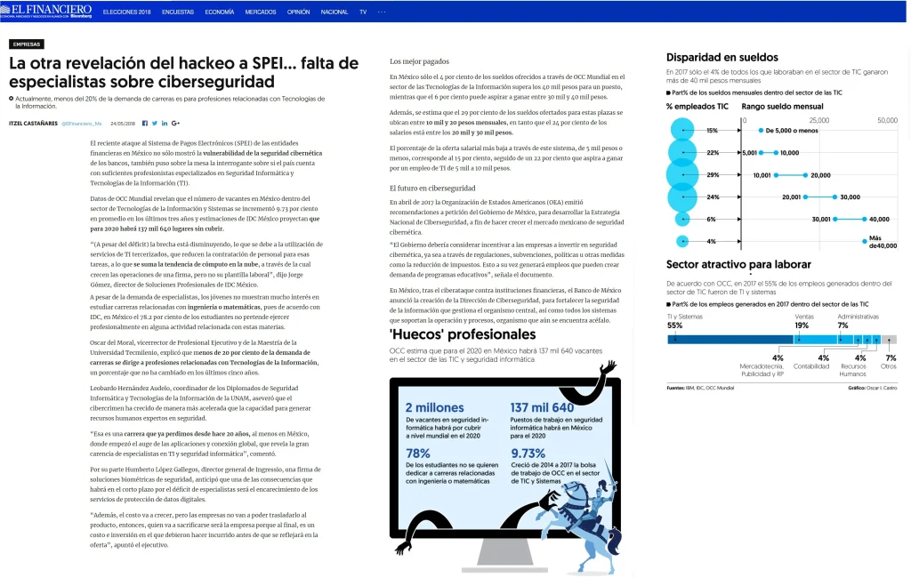 Por eso es muy importante tomar las medidas de seguridad necesarias para evitar afectaciones al interior de las empresas, ante lo surgido recientemente por el hackeo a SPEI, Humberto Gallegos, Director General de Ingressio México, da su opinión al respecto en el artículo: “La otra revelación del hackeo a SPEI… falta de especialistas sobre ciberseguridad” publicado hace una semana por El Financiero.
