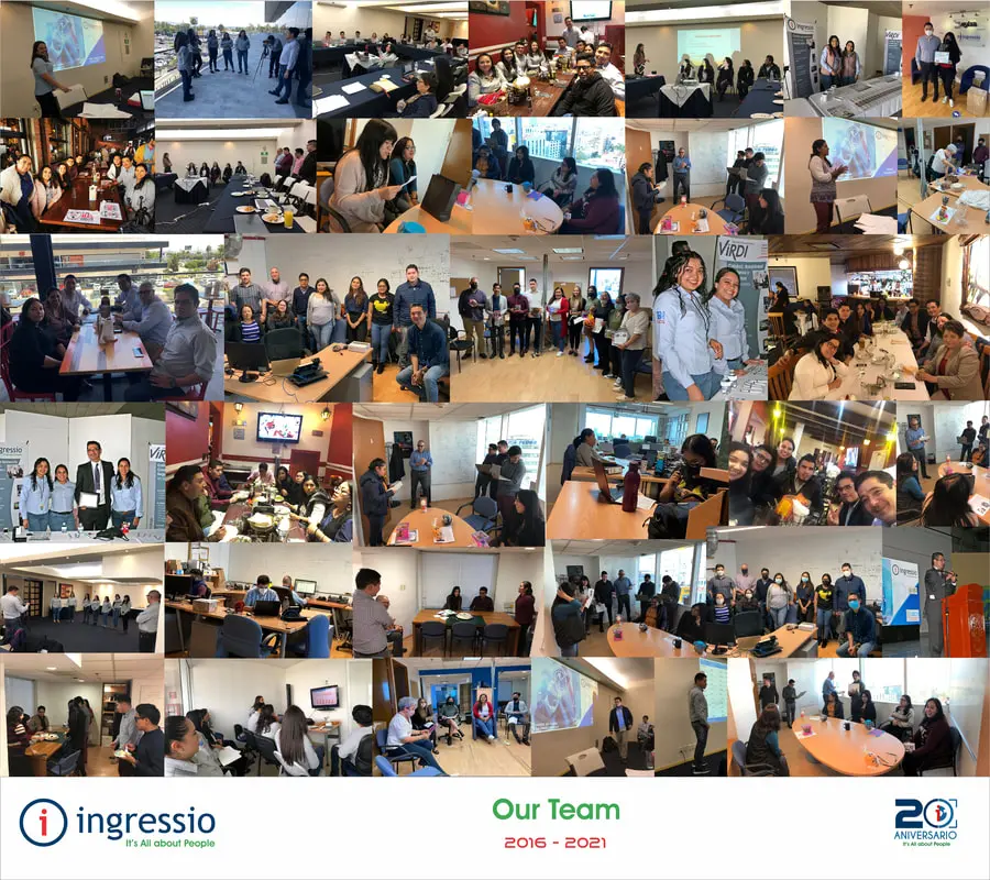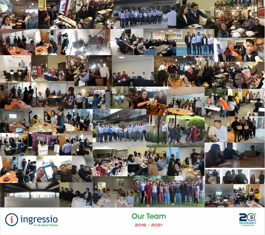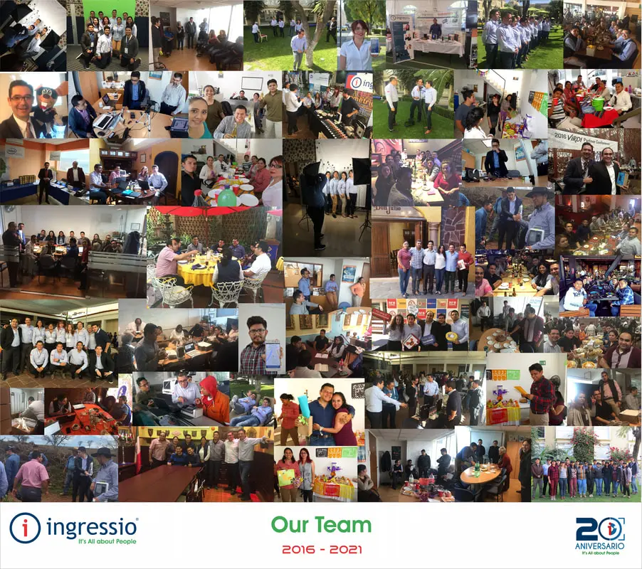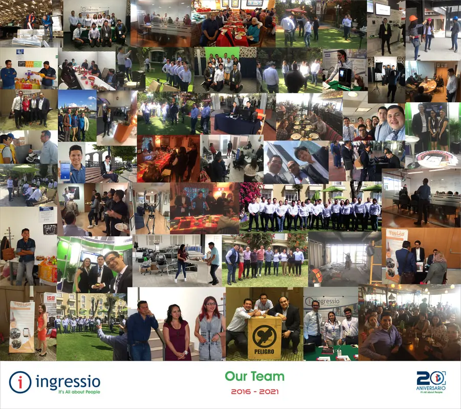 #TBT It’s all about people! Compartimos con ustedes memorias del equipo de Ingressio 2016 a 2021. Nuestro agradecimiento a muchas personas que fueron parte muy importante de la construcción, evolución y transición de la empresa hacia la siguiente etapa de Ingressio a lo largo de estos años.