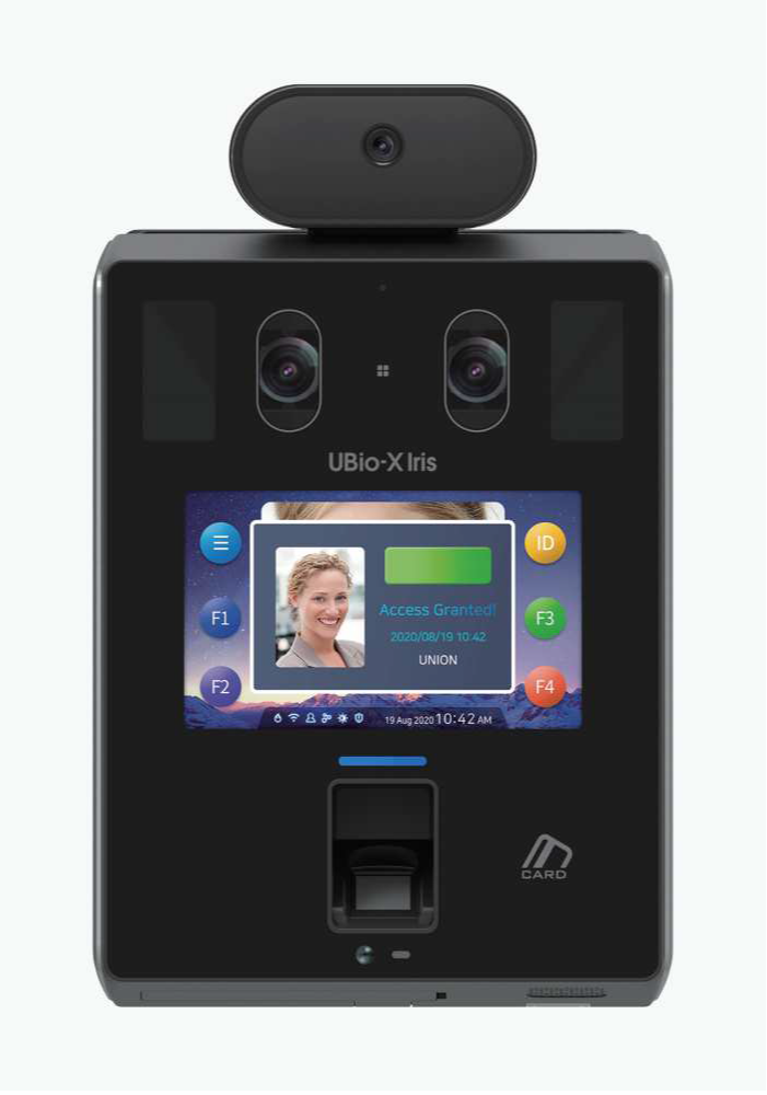 UBio X Iris es nuestro nuevo terminal de control de acceso que reconoce el iris a una distancia de hasta 50 cm, proporciona una autenticación de iris rápida y precisa incluso cuando el usuario usa anteojos o máscara